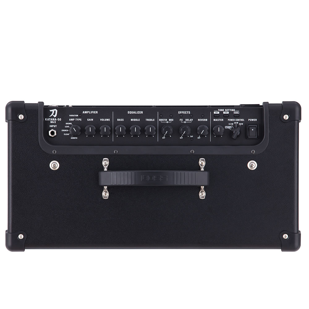 Respaldado por la tecnología Tube Logic de BOSS, Katana MkII ofrece las características de distorsión de salida auténticas de los amplificadores de bulbo genuinos, con el sonido y la sensación que se vuelven mas presentes, mas envolventes y mas sensibles a medida que incrementas el volumen. A diferencia del amplificador clásico de bulbos, la característica variable Power Control de Katana MkII hace que sea fácil volar al punto dulce sin ser despedido del concierto o expulsado de la casa. Simplemente reduce el volumen general según sea necesario para disfrutar de un sonido inspirador de amplificador a todo poder en cualquier lugar donde interpretes tu música, desde la recamara hasta el escenario.