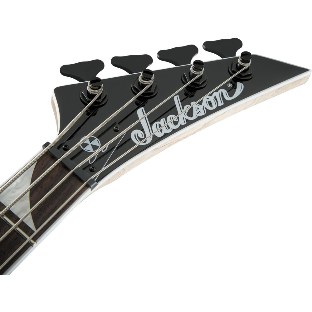 Este bajo muestra con orgullo el estilo distintivo de Jackson; hardware completamente negro, que incluye todo, desde el puente hasta las máquinas de afinación selladas fundidas a presión de Jackson, acabado brillante duradero, incrustaciones de cuello de aleta de tiburón perlado, unión de cuello de una sola capa blanca y el clavijero puntiagudo de 4 en línea característico de Jackson junto con un “Radiation” blanco. ” logo y la firma de Ellefson en relieve en la tapa del alma. Solo un instrumento es lo suficientemente fuerte como para seguir el ritmo de los requisitos técnicamente exigentes de Ellefson: el Jackson David Ellefson CBX IV, y ahora puede ser tuyo.