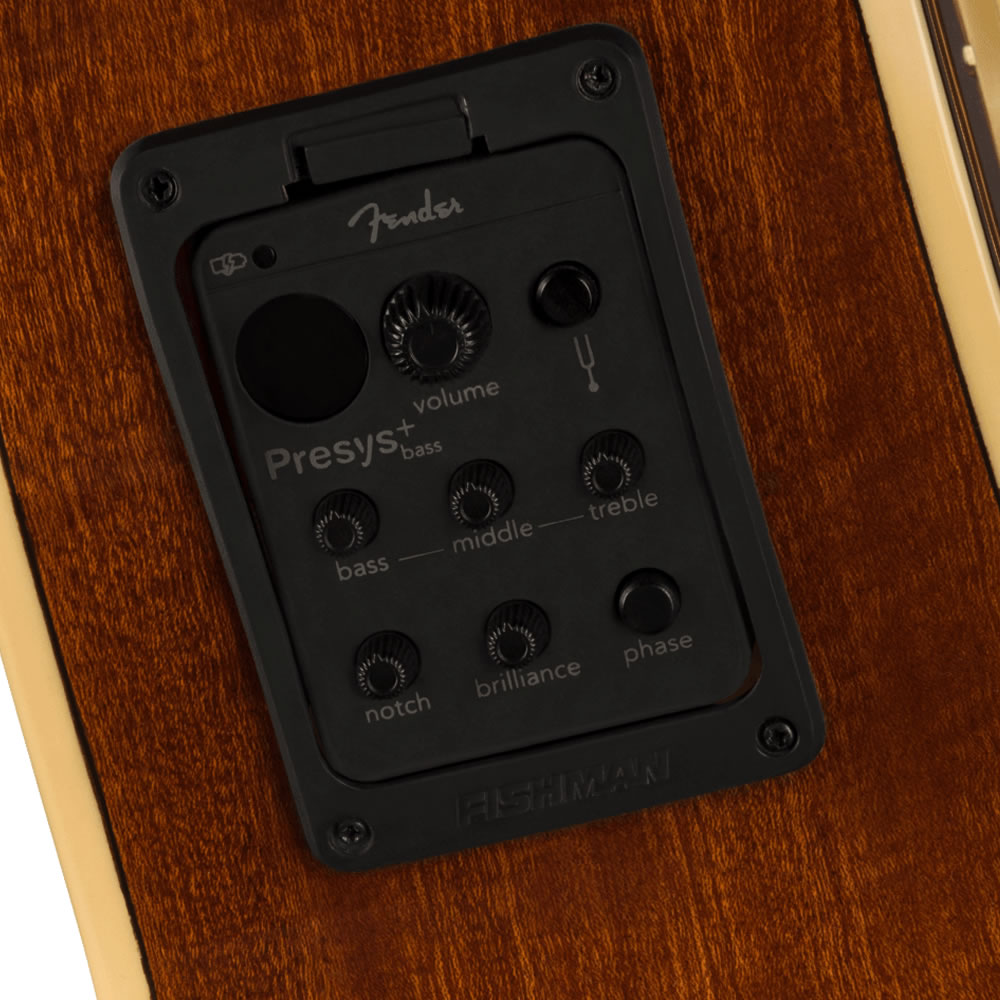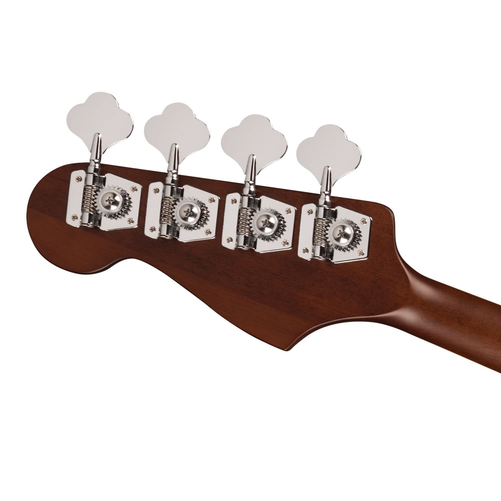 El clavijero de 4 en línea pintado a juego en este bajo es inmediatamente reconocible y emana el ambiente clásico de Fender. También proporciona fuerza y resistencia considerables al “latigazo cervical” que puede dañar gravemente la mayoría de las acústicas tradicionales.