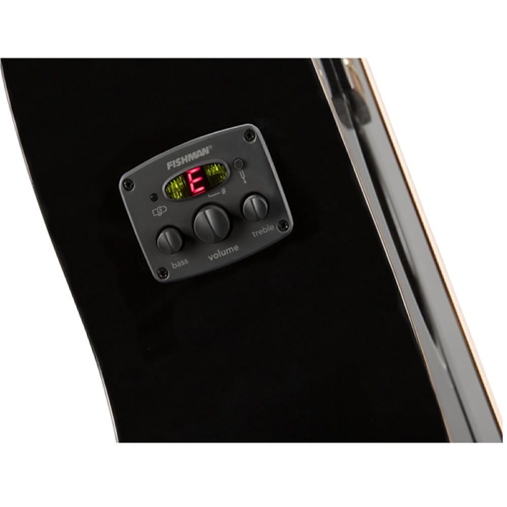 Un sistema de pastilla/preamplificador Fishman Classic Design agrega un rendimiento amplificado sin igual con una variedad de controles integrados a su instrumento acústico sin comprometer su tono puro, rico y resonante. El sintonizador incorporado está convenientemente ubicado justo donde puede verlo.