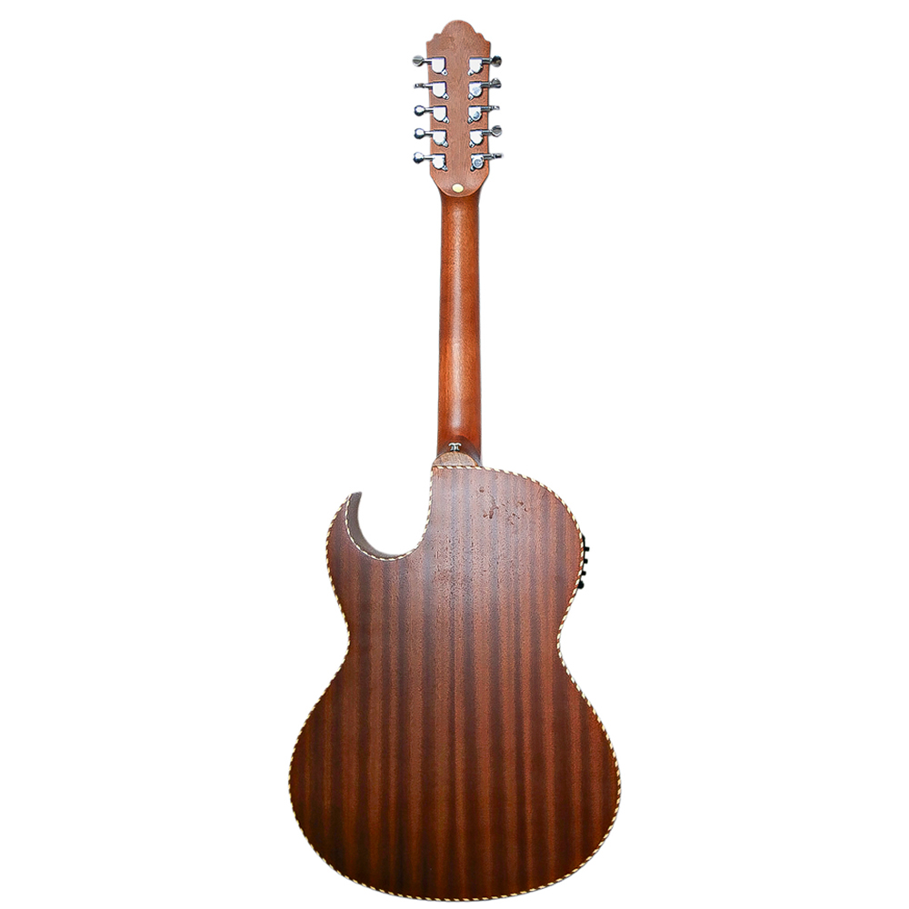 Un puente de palisandro mejora el sostenido y la calidez tonal, mientras que la cejilla y la selleta de hueso de buey mejoran la resonancia y la claridad. La encuadernación estilo cuerda de madera maciza añade un toque de arte y encanto tradicional. Equipada con clavijeros de fundición cromada para una afinación precisa, trastes de cuproníquel de 2,2 mm con extremos redondeados para una sensación suave y un sistema de ecualizador 4PM para un sonido claro y amplificado.