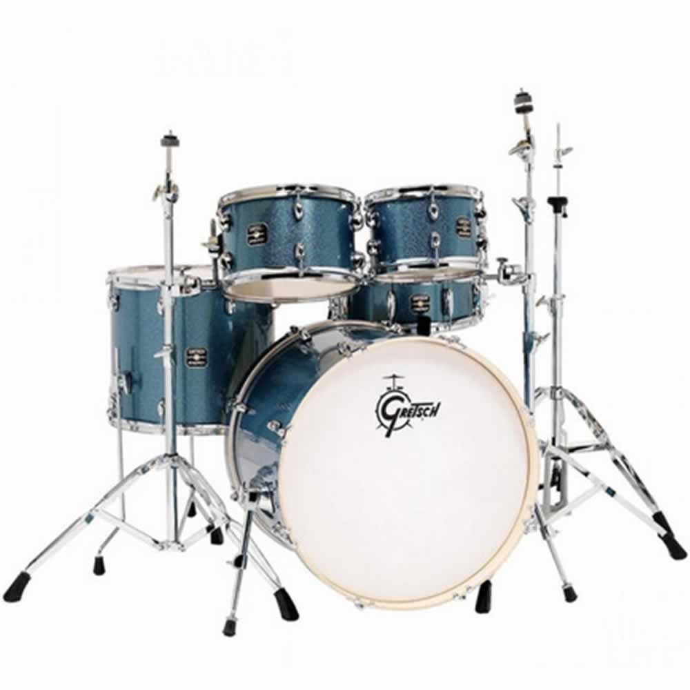 Bombo de 22″ x 18″. Tarola de 14″ x 5.5″. Tom de aire de 10” x 7”. Tom de aire de 12″ x 8″. Tom de piso de 16” x 14”.