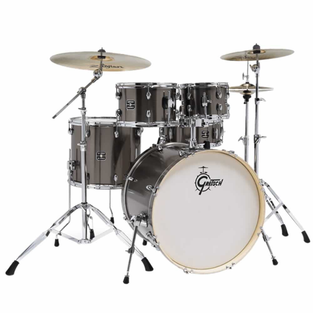 Bombo de 22″ x 18″. Tarola de 14″ x 5.5″. Tom de aire de 10” x 7”. Tom de aire de 12″ x 8″. Tom de piso de 16” x 14”.