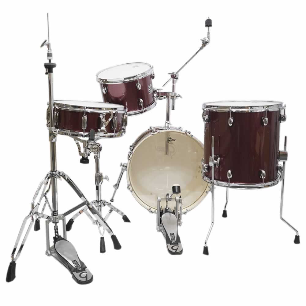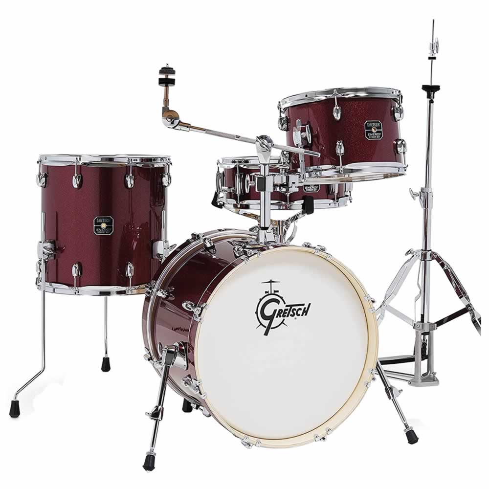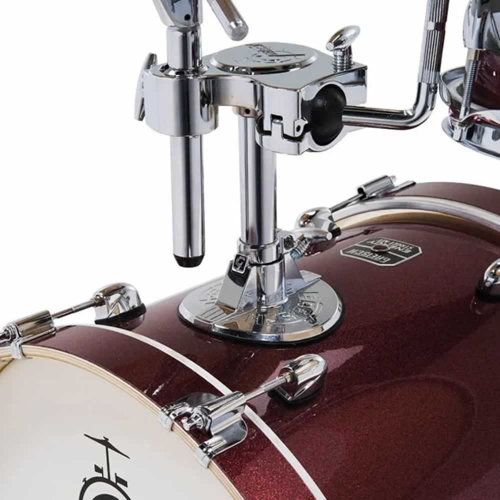 Bombo de 18×14″, tarola de 14×5.5″, tom de aire de 12×8″ y tom de piso de 14×14″. - Hardware incluido.