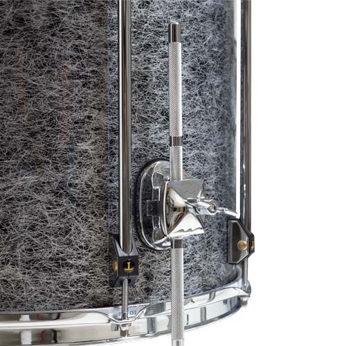 Tom de piso fundido a presión cromado Soporte en aleación ligera con tuerca de mariposa para una instalación rápida y segura. El soporte está equipado con una junta de goma blanda antivibración. La forma y el tamaño pequeño facilitan la colocación del tambor en su estuche.