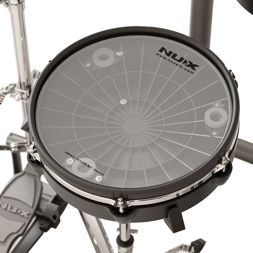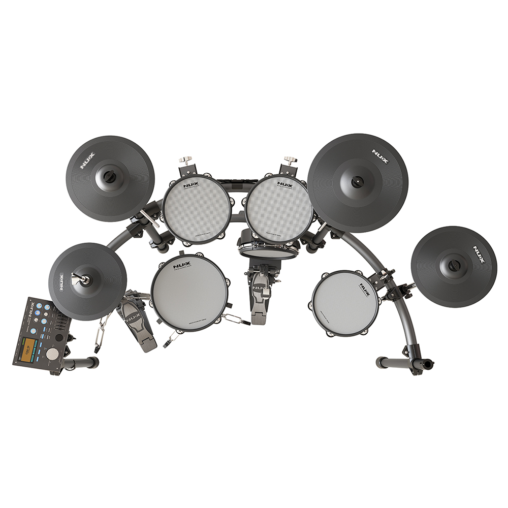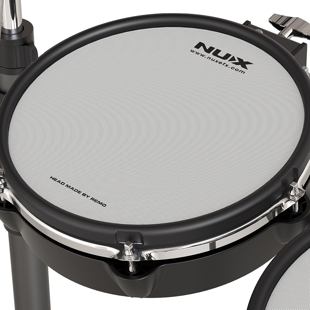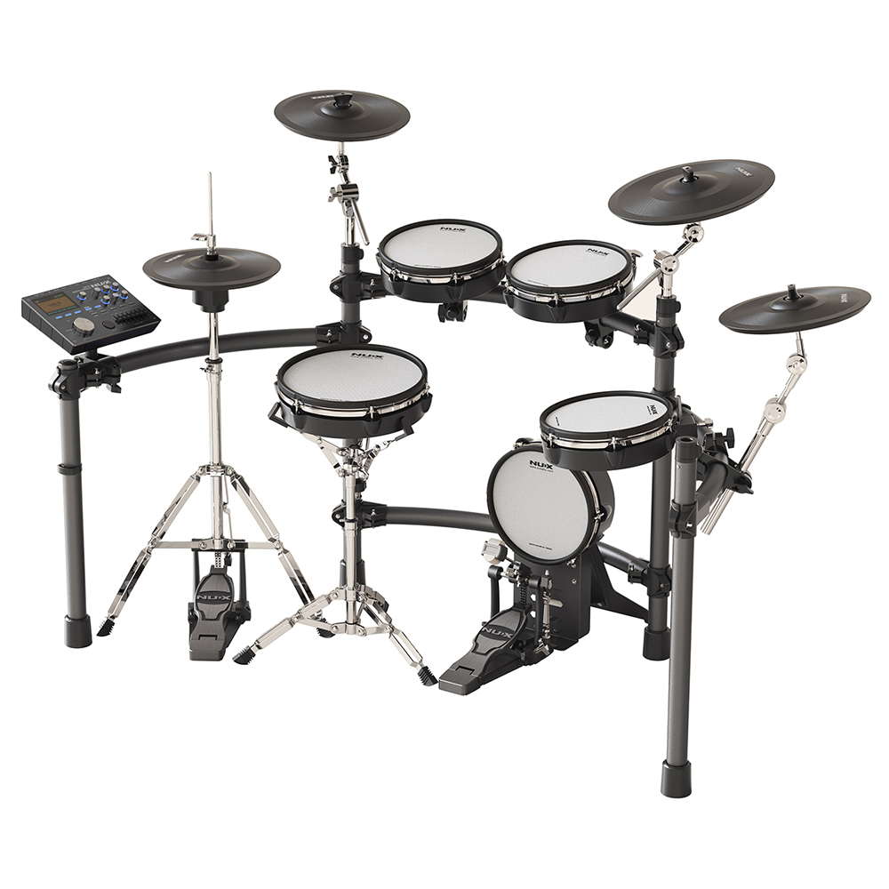 NUX DM-8 es nuestro más nuevo kit de batería que presenta innovadoras tecnologías, brindando a los bateristas una sensación acústica auténtica y una interpretación expresiva realista. DM-8 cuenta con un sistema de rack robusto que no es solamente duradero, sino que se ve genial cuando estás rockeando. El hi-hat está montado en su propio soporte para contratiempos, lo que proporciona una sensación más realista en comparación con un pad fijo. Montado en una unidad de sensor de movimiento, el hi-hat se puede ajustar fácilmente a tu estilo de toque, incluyendo los hi-hats cerrados, abiertos y semiabiertos. El pad de tarola emula de forma auténtica los comportamientos de una tarola acústica real con su diseño de aro y carcasa. La triple zona te permite tocar rim shots y cross sticks mientras se adapta a las necesidades de la mayoría de las situaciones de interpretación, desde rock, funk, música latina y la el cross stick es ideal para baladas o bossa nova. La tarola utiliza la última tecnología three-point trigger, lo que hace que el sonido de cada posición en el parche sea más equilibrado. También se incluye un soporte de tarola independiente muy estable para dar el mejor rendimiento. El bombo independiente de 10″ pulgadas de nuevo diseño puede3 admitir completamente un doble pedal de bombo. El nuevo pedal de bombo presenta doble cadena y un plato más grueso. El diseño de doble cadena hace que el baquetón se balancee de manera más estable, mientras que el plato engrosado evita que todo el pedal se mueva libremente. El nuevo módulo de sonido DM-8 está repleto de características innovadoras y llamativas, incluidos los Group Faders, que asignan niveles de audio a cada pad individual. Crea tus propias mezclas de batería personalizadas libremente. También se incluyen 30 sets de drum kits de alta fidelidad con diferentes estilos. No importa el estilo de batería, puedes obtener los sonidos que deseas. Las funciones de personalización de sonido intuitivas y potentes permiten a los usuarios editar libremente sus propios kits de batería. Puedes asignar cualquier sonido al aro o al parche. El módulo DM-8 también es una interfaz de audio, con la capacidad de enviar audio estéreo y datos MIDI a una computadora Mac o Windows a través de USB. Esto te permite grabar audio discreto y tracks de batería MIDI en cualquier DAW o activar sonidos desde instrumentos de batería basados en software para tocar en vivo o en estudio. ¿Quieres grabar más que un par estéreo? No hay problema. Puedes grabar hasta 14 tracks de audio separadas en tu DAW favorito. El DM-8 te permite importar tus propias muestras WAV por medio de una unidad flash USB. Ahora puedes crear el kit de tus sueños con tus muestras favoritas y asignarlas a cualquier pad para tocar. Piensa en las posibilidades. ¿Quieres personalizar aún más tus sonidos de batería? DM-8 incluye una selección de efectos de alta calidad que se pueden aplicar a cada pad. Simplemente navega hasta el menú EFFECT y selecciona tu efecto. Agrega EQ, compresión, overdrive o reverb a los pads individuales o agrega compresión master y/o ecualiza tu mezcla general. DM-8 tiene una gran selección de canciones integradas con las que puedes improvisar, incluida una variedad dinámica de estilos musicales para cada tipo de baterista. La práctica hace la perfección. Graba tus interpretaciones de batería en solitario en una memoria USB o carga tu track de acompañamiento favorita, toca junto con ella y guárdala como un archivo WAV para analizar tu interpretación al escuchar la reproducción de la mezcla completa. Y finalmente, se proporciona un puedo AUX IN para conectar tu dispositivo favorito de reproducción y crear una mezcla sólida entre tus pistas de acompañamiento y tu reproducción.