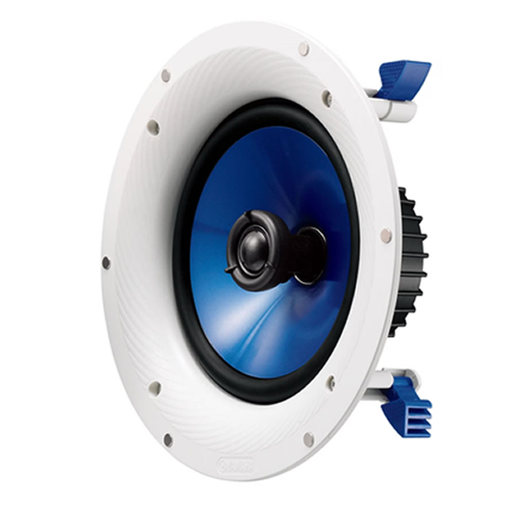 - Altavoz de graves con cono de mica de polipropileno azul.