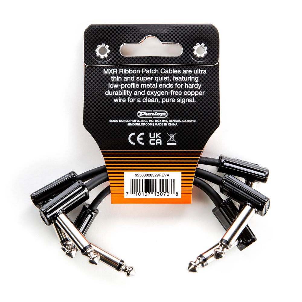 Los cables de conexión de cinta MXR son ultradelgados y súper silenciosos, cuentan con extremos de metal de perfil bajo para una gran durabilidad y cable de cobre sin oxígeno para una señal limpia y pura.