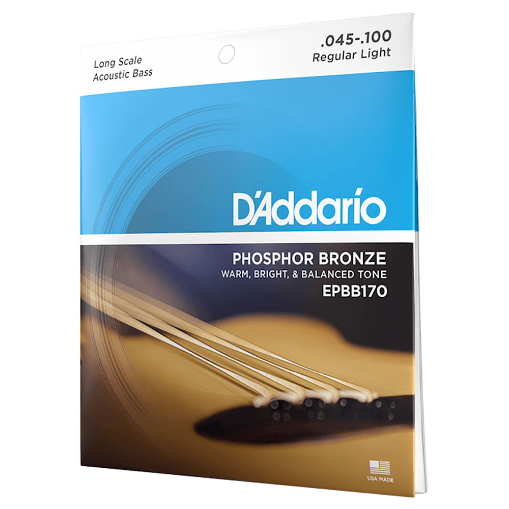 EPBB170, el juego para bajo acústico más popular de D’Addario proporciona un tono robusto, profundo y con proyección. El bronce fosforado fue introducido para la fabricación de cuerdas por D’Addario en 1974 y se ha convertido en un sinónimo de calidez, nitidez y tono acústico bien equilibrado. Las cuerdas de bronce fosforado de D’Addario poseen un entorchado de precisión con bronce fosforado resistente a la corrosión sobre una cuerda de acero de alto carbono, con forma hexagonal y estirada cuidadosamente. El resultado es un tono brillante y duradero con excelente entonación. D’Addario es la marca de cuerdas para instrumento más vendida del mundo. Sus productos son el resultado de más de un siglo de investigación y desarrollo y son instaladas como equipo de serie en las mejores marcas de instrumentos. La pureza de sus materiales y la maquinaria de alta tecnología empleadas en la fabricación de sus productos hacen de D’Addario la marca preferida por los músicos más relevantes de la actualidad. Todas las encordaduras D’Addario vienen en empaques sellados con un gas especial que previene la corrosión y son amigables con el medio ambiente.