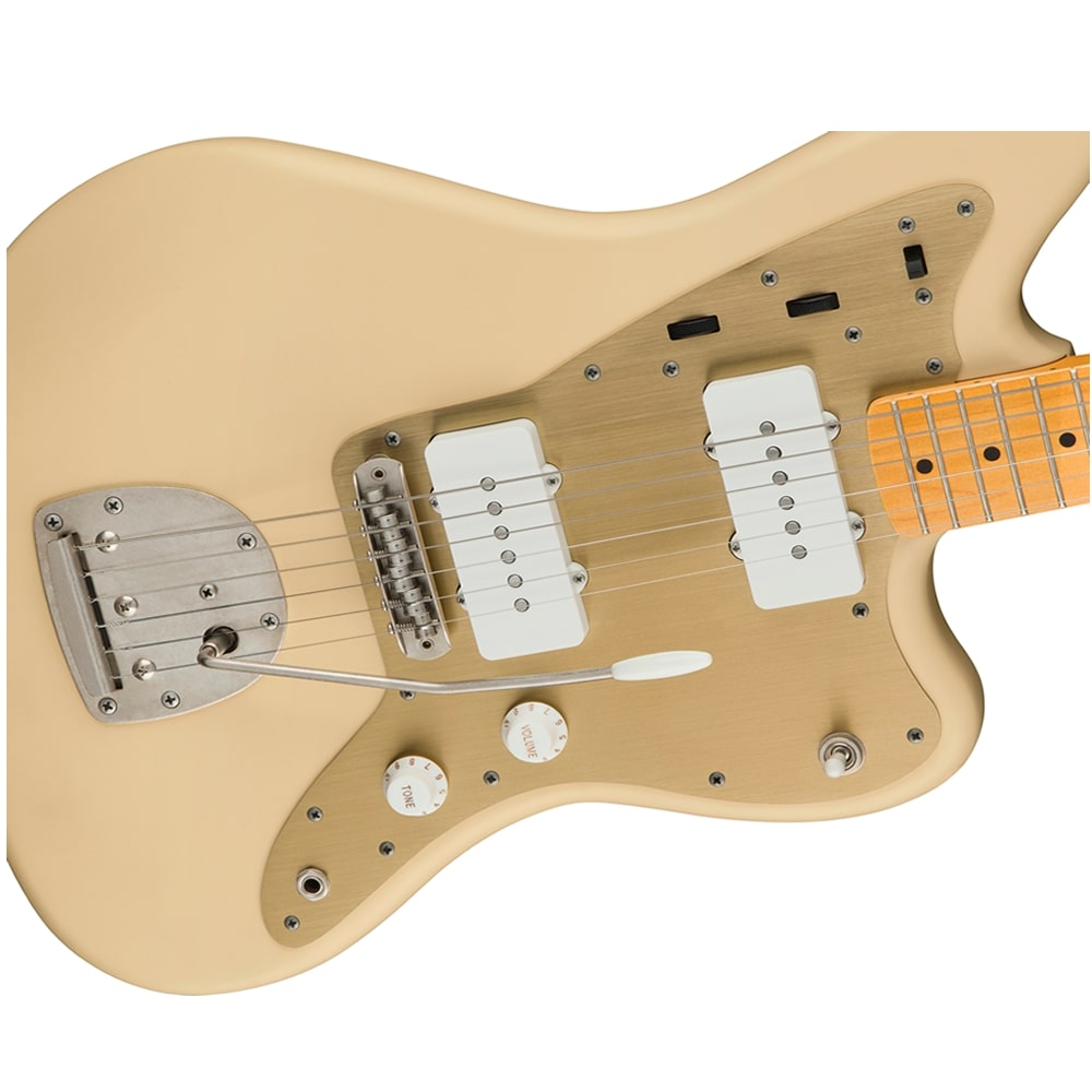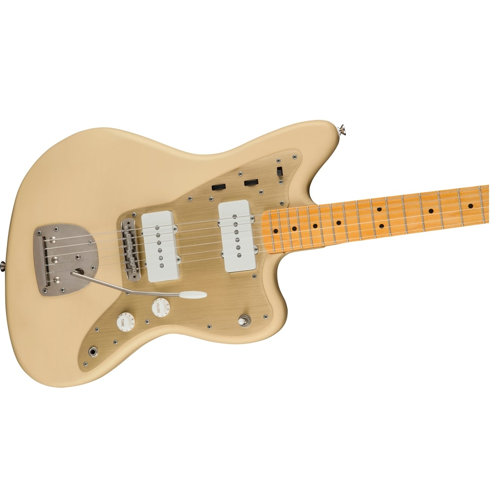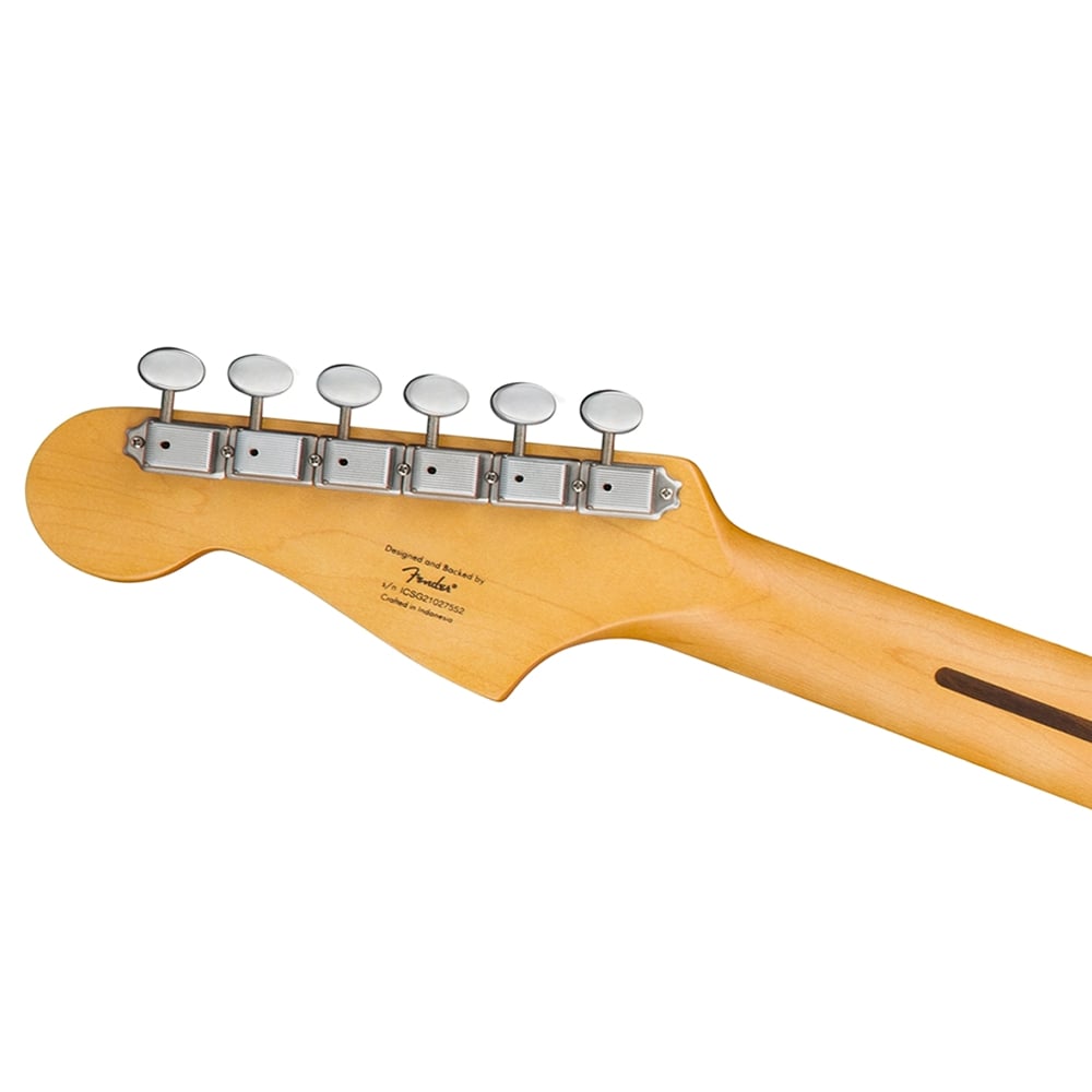 Este modelo presenta un diseño de placa de mástil personalizado que conmemora los 40 años de historia de Squier.