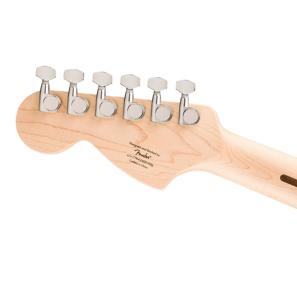 La Stratocaster® Junior HSS Serie Affinity™ de Squier® es una excelente introducción a la prestigiosa familia Fender®. Ofrece un diseño legendario y el tono emblemático para los/las aspirantes a guitarristas. Este modelo de tamaño reducido presenta diversas mejoras que facilitan la ejecución, como un cuerpo ligero con escala reducida, un mástil con perfil en forma de “C” delgado y cómodo, una escala corta de 24″ (610 mm) y un puente de trémolo de 2 puntos para una acción de trémolo superior. Además, cuenta con clavijas selladas de fundición a presión con ejes divididos para una afinación precisa y que facilita el cambio de cuerdas.
