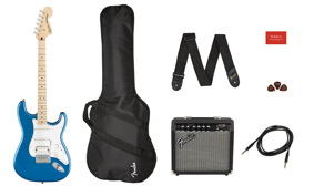 - Incluye: suscripción gratuita de 3 meses a Fender Play, estuche acolchado, amplificador de guitarra Frontman™ 15G, cable de instrumento, correa de instrumento, púas