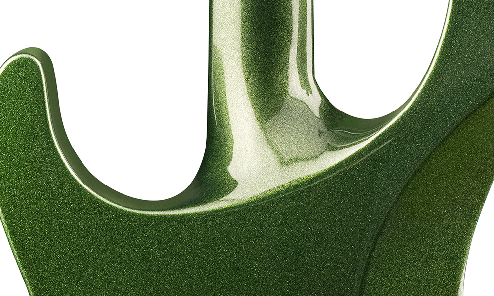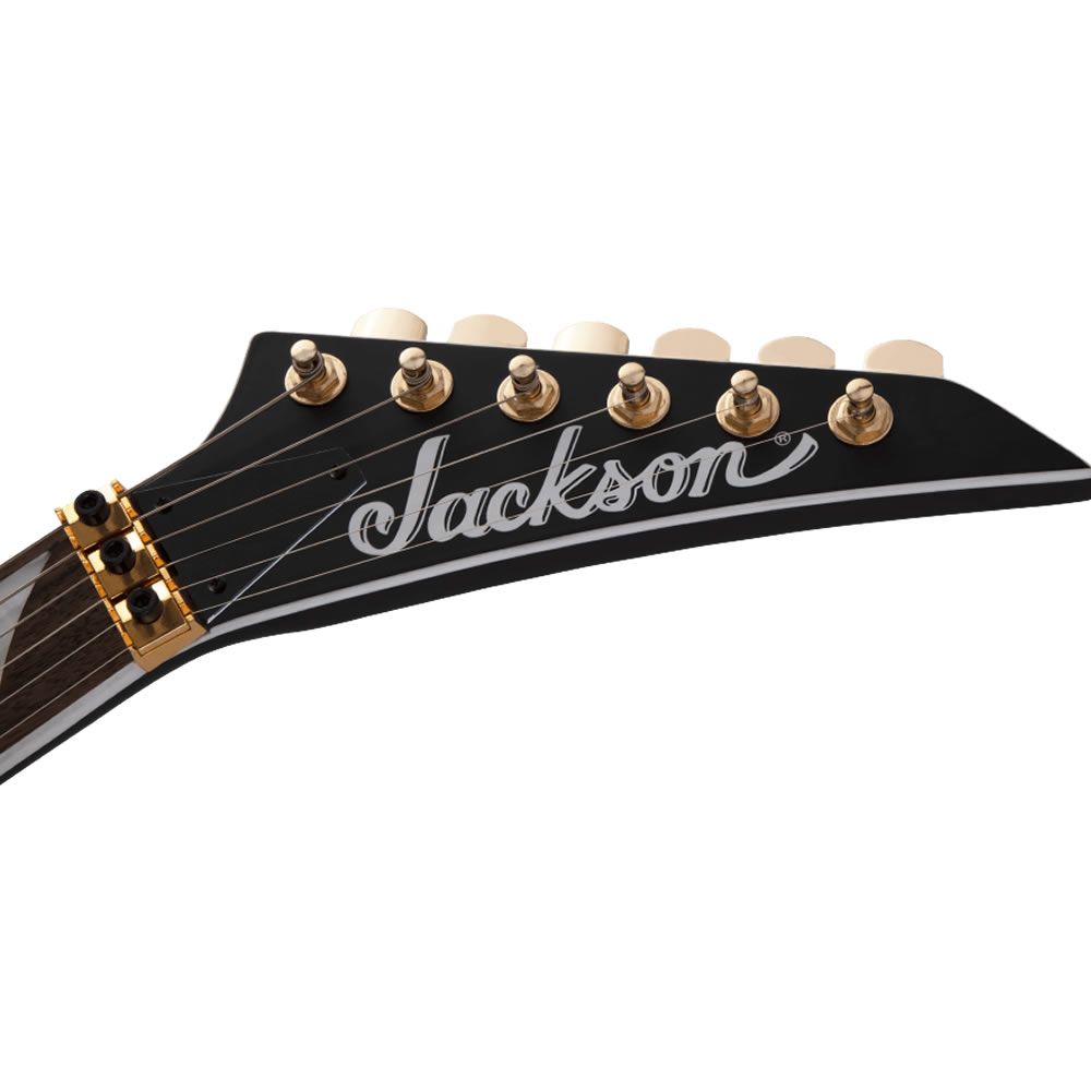 La construcción del mástil a través del cuerpo ha sido un sello distintivo de Jackson desde 1980, lo que permite una mayor comodidad al tocar y un sustain mejorado. Neck-through es un método de construcción de guitarras que consiste en extender la pieza de madera utilizada para el mástil a lo largo de todo el cuerpo. Las varillas de refuerzo de grafito que flanquean el alma brindan aún más estabilidad al mástil para ayudar al instrumento a soportar los rigores de la carretera.