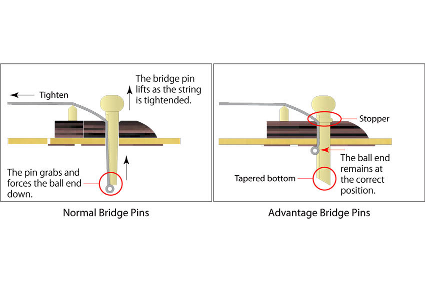 Estos pines realmente son una ventaja sobre los pines antiguos. Los pines Advantage™ son más fáciles de sacar y de colocar que los pines estándar. Un extremo especial en forma de bulbo hace que el pasador sea fácil de agarrar y también evita que el pasador se empuje demasiado. Lo mejor de todo es que con Advantage™ el alfiler y la cuerda permanecen en su lugar.