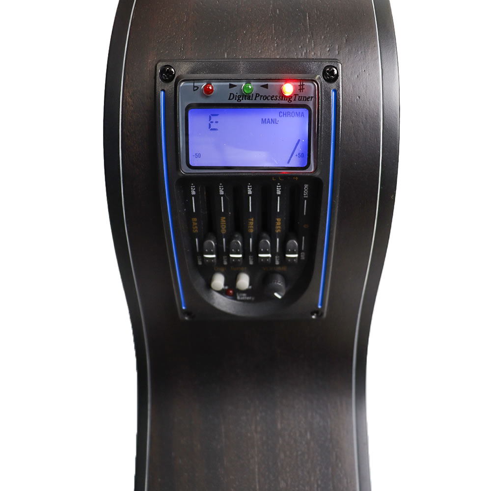 Con caja delgada de 40 pulgadas de caoba y su corte en media luna facilita el acceso a sus trastes superiores convirtiéndola en una de las guitarras más populares de la Marca Jmt.