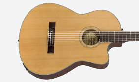 Esta guitarra combina la facilidad de ejecución y el tono distintivo de las cuerdas de nailon con la comodidad del espaciado de las cuerdas de acero para una sensación de lo mejor de ambos mundos.