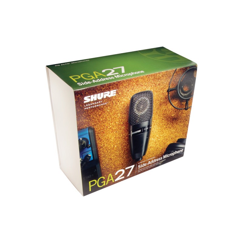 El PGA27 es un micrófono condensador de gran diafragma y calidad profesional con un diseño discreto y moderno, con rejilla y acabado metálicos de color negro. Calidad legendaria de Shure en la construcción, para un funcionamiento excepcional en entornos rigurosos.