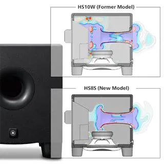 Las cajas de la serie HS fueron diseñadas para eliminar las resonancias no deseadas y para aumentar la precisión durante la reproducción hasta límites extremos. Las cajas han sido fabricadas con MDF muy denso y resistente, con una respuesta acústica amortiguada, resultando ideales para los monitores de referencia. Gracias a la experiencia de más de 100 años en el diseño de pianos de Yamaha, los ingenieros encargados de la serie HS utilizaron la tradicional técnica de junta a inglete de tres vías. Común a ciertos diseños arquitectónicos, esta estructura ancla firmemente las esquinas de la caja para aumentar radicalmente la durabilidad, eliminando las resonancias no deseadas que puedan afectar al sonido global.