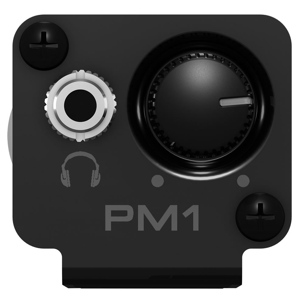Control de volumen para sistema de monitoreo personal Powerplay PM1, entrada XLR con mecanismo de bloqueo, conector de audífonos mini jack de 3.5 mm, práctico clip para cinturón, resistente chasis de metal.