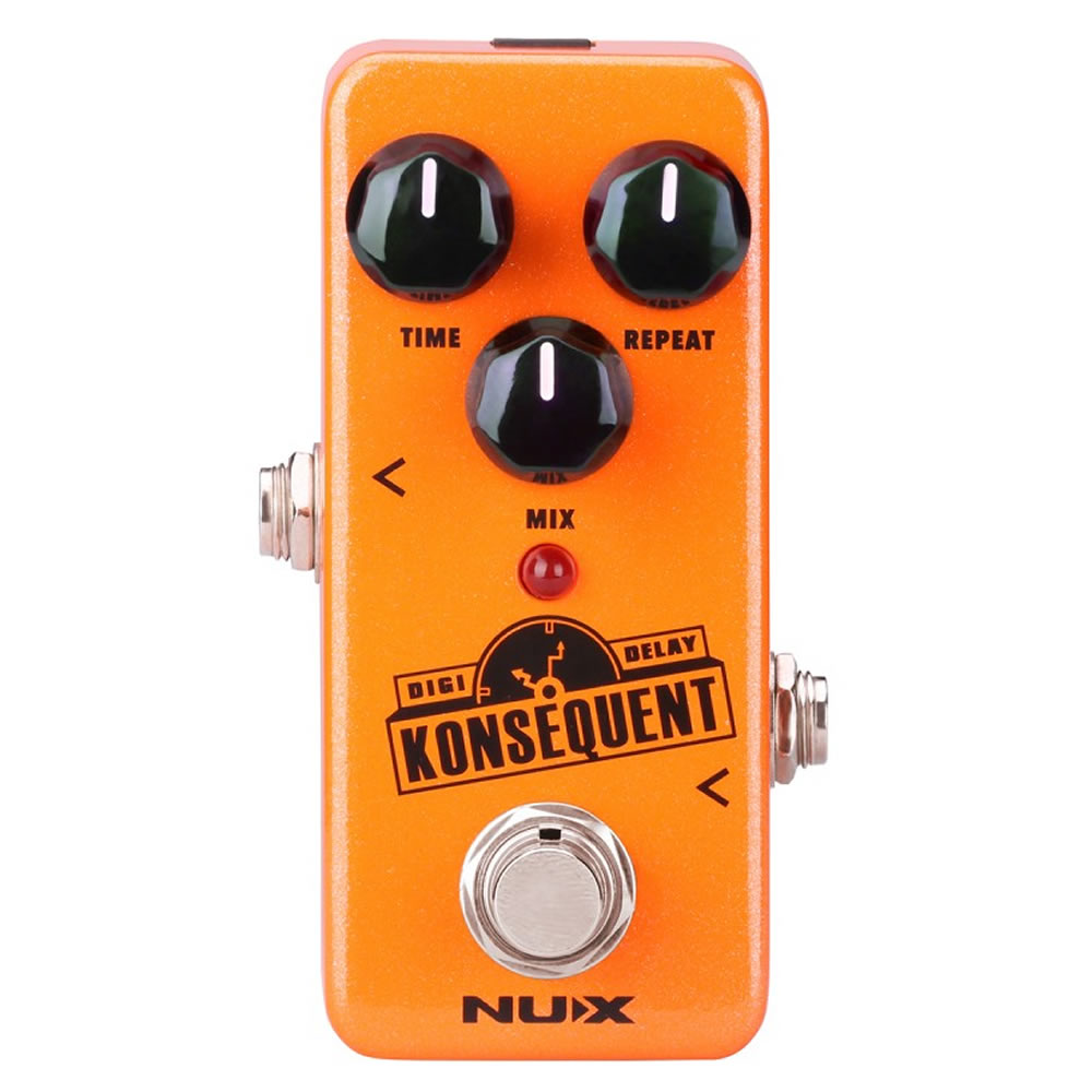 Pedal de delay para guitarra, perillas Time, Repeat y Mix, entrada y salida jack 1/4″, patrón groove y patrón regular, actualizaciones de firmware gratuitas, procesador digital inteligente para reducir las molestas interferencias causadas por el pico de audio, funciona con adaptador regular 9V (no incluido), dimensiones: 94 x 51 x 53 mm, peso: 174 g.