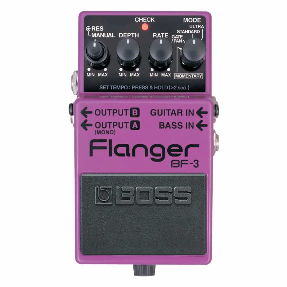 El BF-3 es un pedal compacto que produce los sonidos de flanger estéreo más gruesos de la historia de los pedales BOSS, y en el modo Ultra produce los sonidos de flanger más profundos de siempre, mientras que Gate/Pan crea un flanging espacioso con un fantástico efecto Slicer, que parece crear un “remolino” alrededor del oyente.