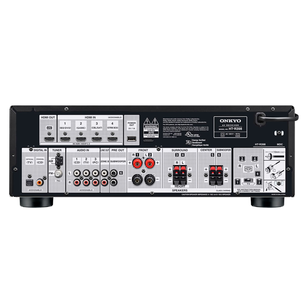Disfrute de compatibilidad con video HDR (alto rango dinámico), incluidos HDR10, HLG, Dolby Vision ® y BT.2020. También es compatible con el espacio de color 4:4:4. Seis entradas HDMI, salida principal compatible con ARC y salida secundaria transmiten video 4K/60p y HDR desde el reproductor a un televisor y un proyector compatibles, y todos los terminales son compatibles con HDCP 2.2.