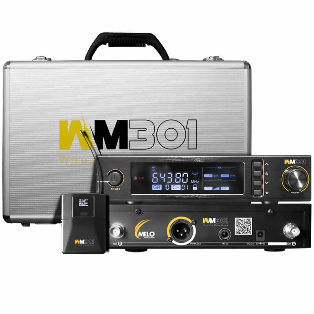 El nuevo WM301 brinda un excelente sonido, claridad y seguridad. Sistema inalámbrico dedicado a oradores, cantantes, guitarristas o bajistas que requieren un sistema inalámbrico profesional a un excelente precio. Se conforma por una cápsula lavalier, una diadema, cable TS para instrumento, transmisor y receptor, ¡3 opciones de conexión en un solo equipo!