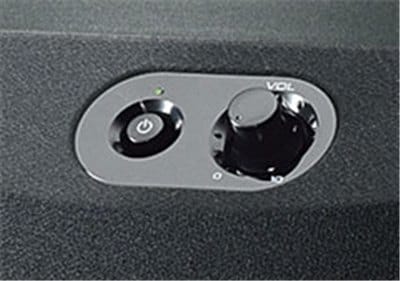Los botones de encendido y volumen, que se usan con mayor frecuencia, están ubicados en la superficie frontal de la unidad para facilitar el acceso. Tiene una inclinación de 45°, lo que facilita su uso incluso cuando se coloca en el suelo. Un indicador LED está encima del botón de encendido, por lo que incluso en una habitación con poca luz es fácil saber si está encendido o apagado.