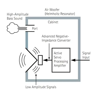 El nuevo puerto Twisted Flare aprovecha la amplia experiencia en el desarrollo de subwoofers. La forma acampanada y suavemente retorcida difunde el vórtice de aire generado alrededor del borde del puerto, creando un flujo de aire suave. Esto reduce el ruido extraño que no está presente en la señal de entrada original y proporciona una reproducción de baja frecuencia clara y precisa. Desde sonidos de efectos especiales en películas hasta la atmósfera de un lugar en vivo, escuchará bajos que son claros, ajustados y realistas.