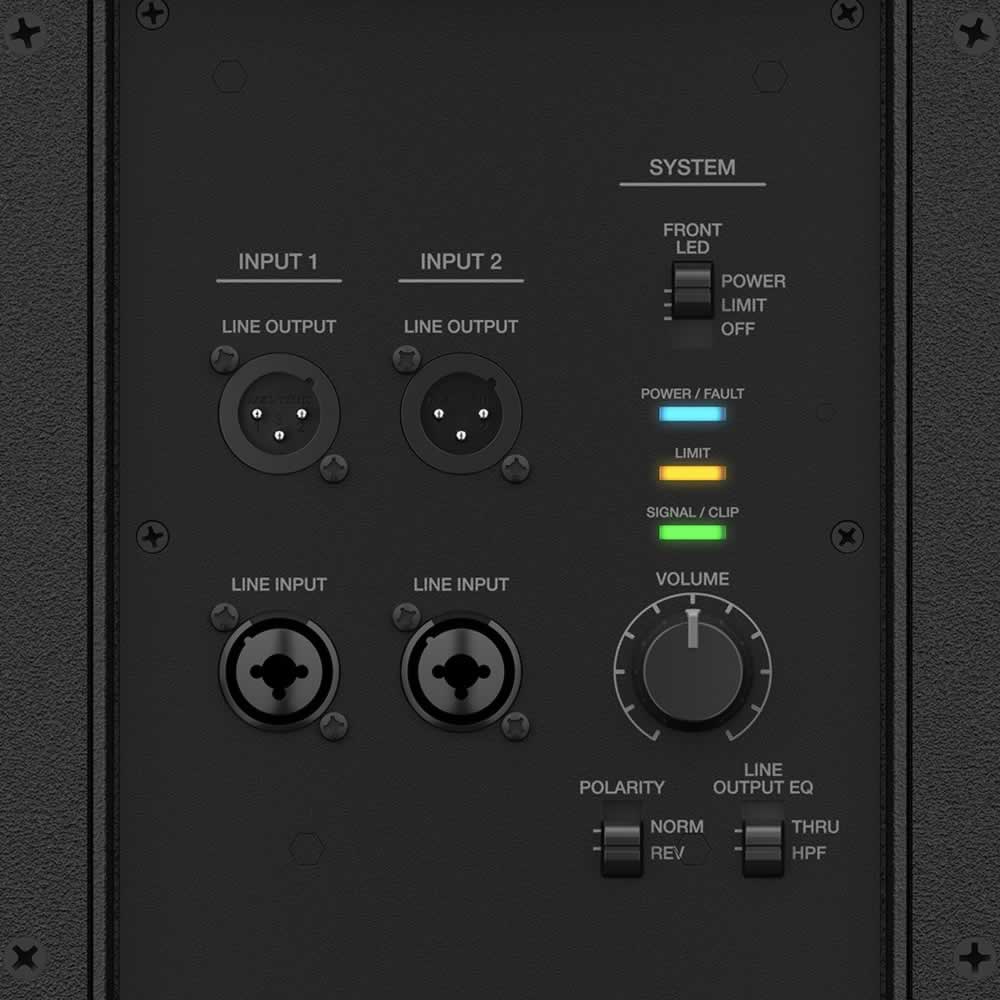 El ecualizador de salida de línea configura la salida del subwoofer F1 en un filtro de paso alto o rango completo, lo que permite una fácil selección de cruce cuando se usa con un altavoz principal.